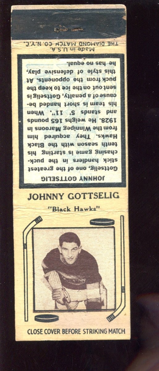 1935 Diamond Hockey Matchbook Cover Johnny Gottselig Chicago Black Hawks