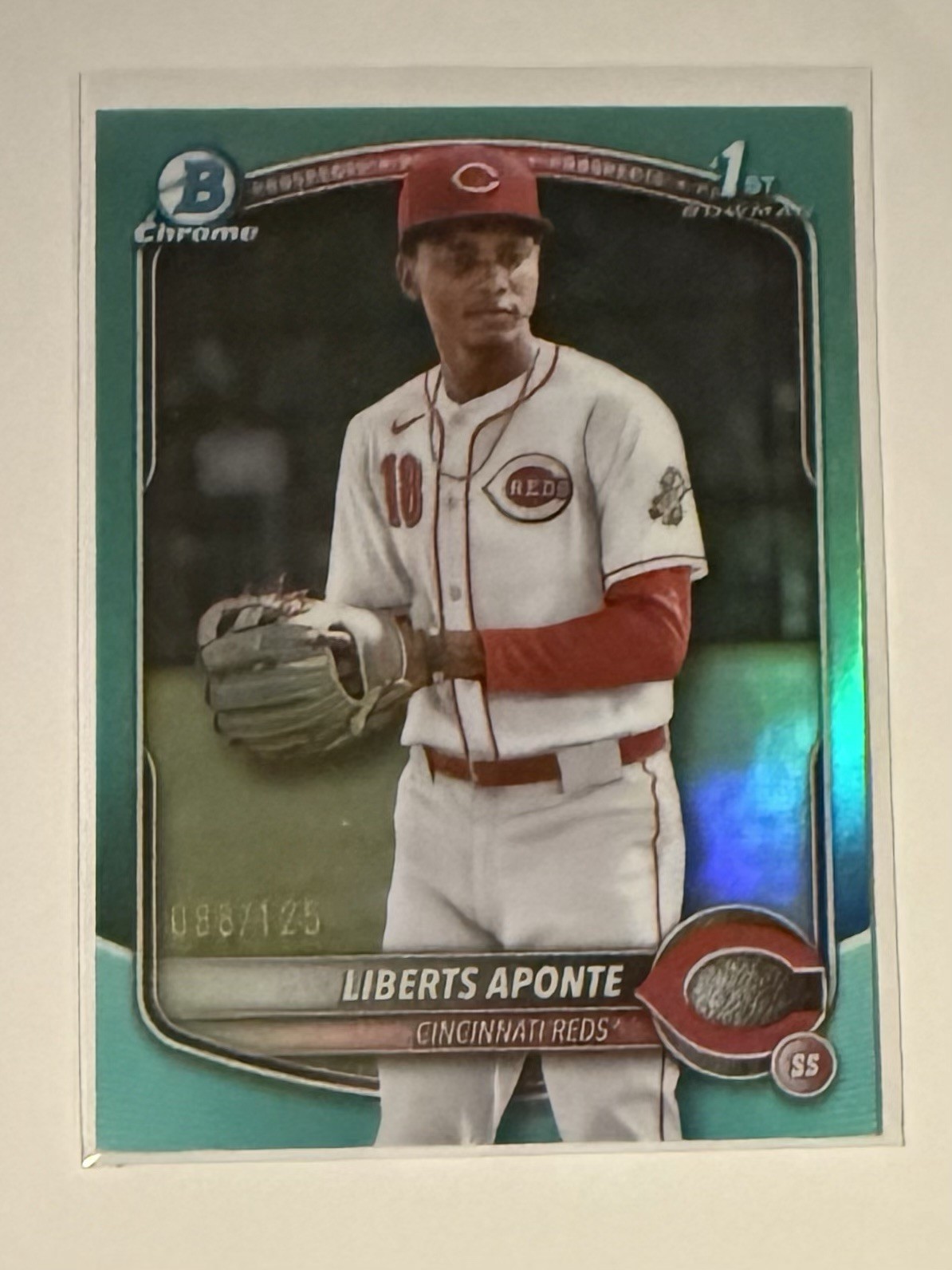 2025 Bowman Chrome Baseball Prospects 1st Liberts Aponte #BCP-174 Aqua /125 Reds