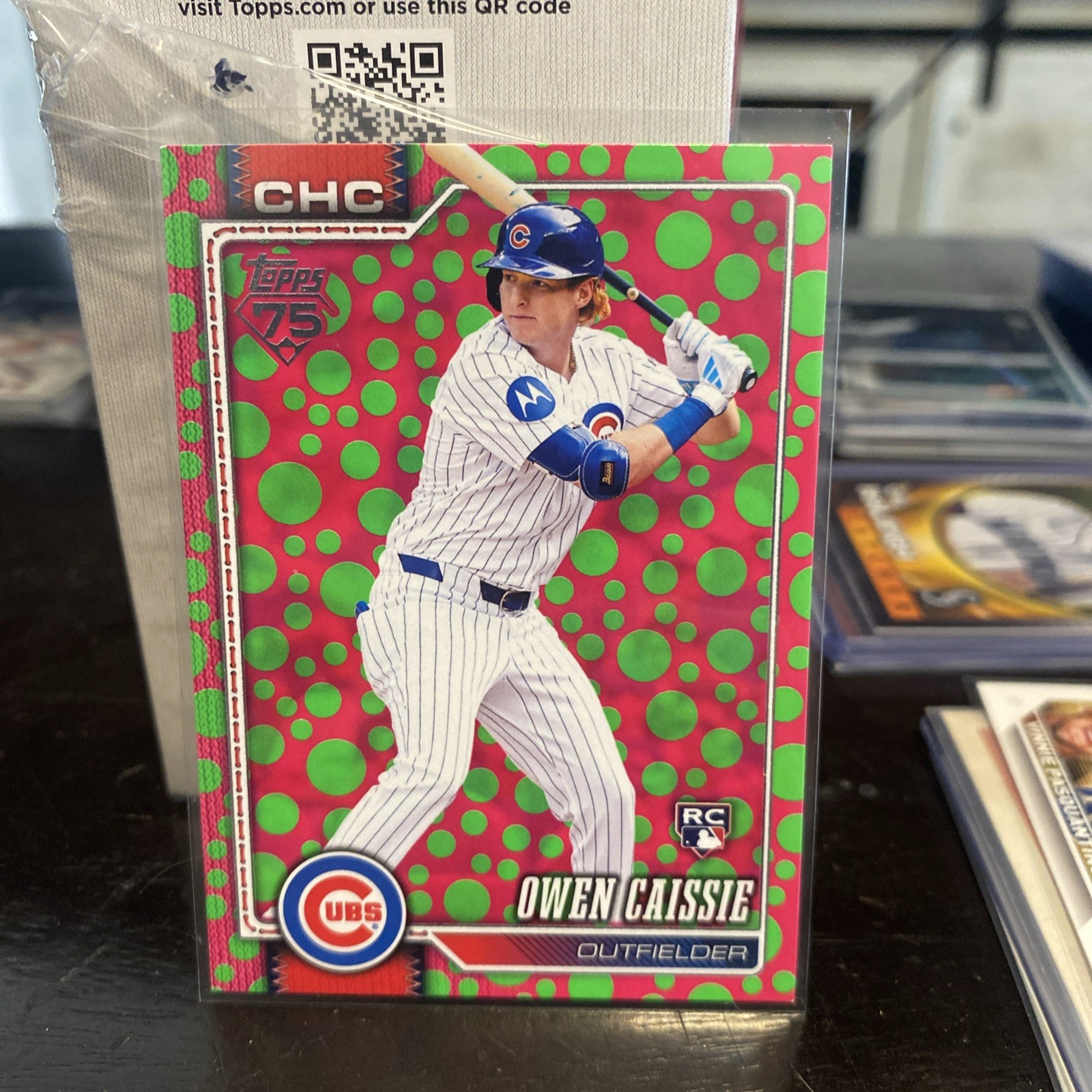 2026 Topps Baseball Series 1 Owen Caissie Easter Pink Green Polkadots (RC) #233