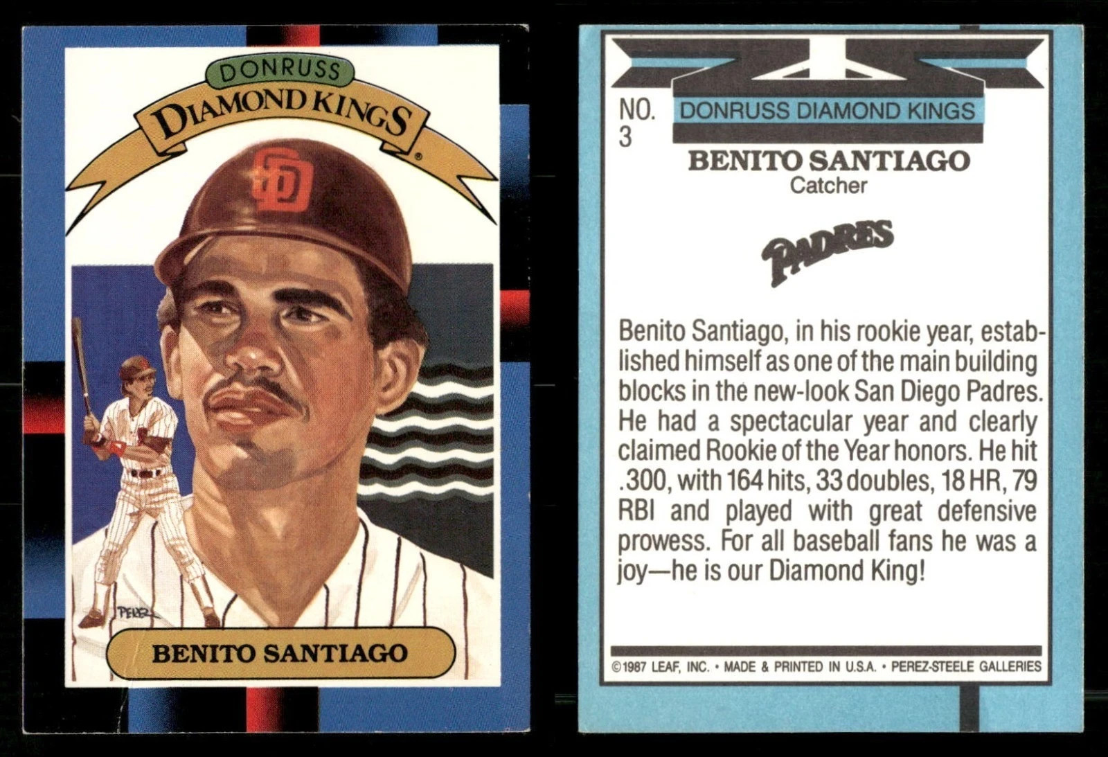 1988 Donruss Benito Santiago #3 Diamond Kings San Diego Padres MLB Baseball