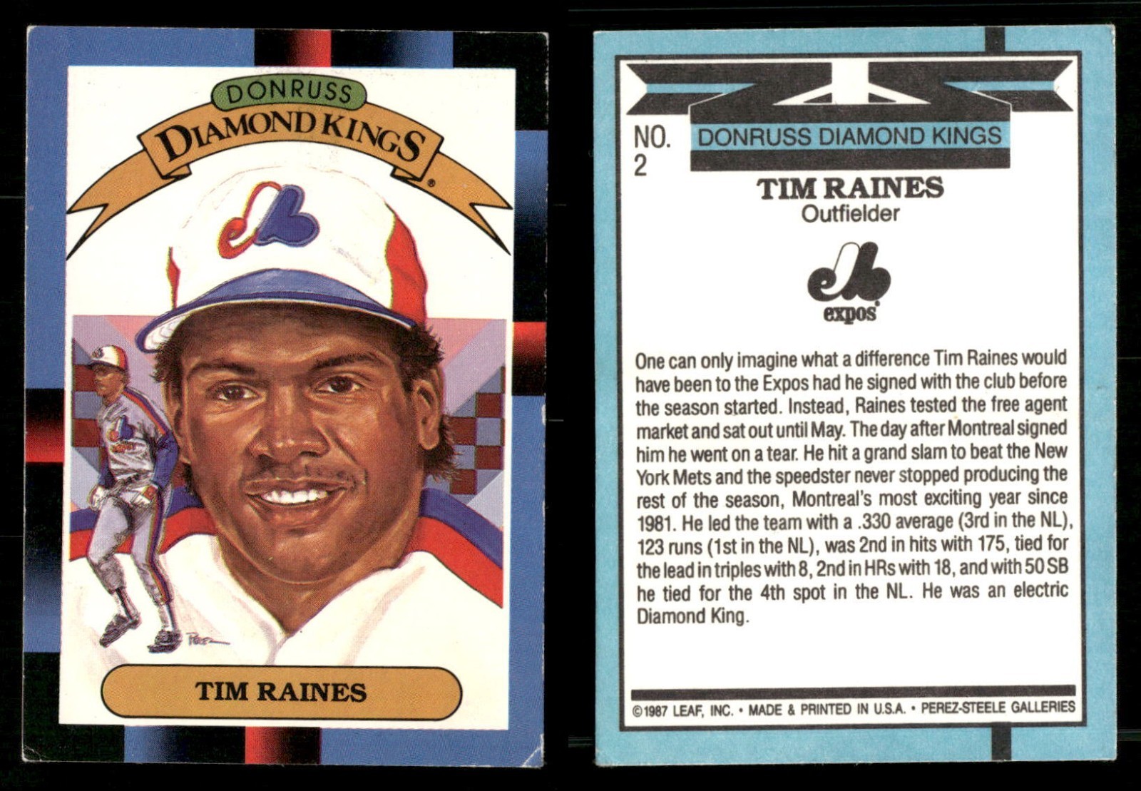 Donruss Diamond Kings Tim Raines #2 Montreal Expos 1987 Vintage Baseball Card