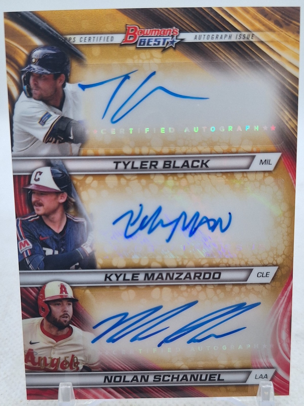 BLACK, MANZARDO, SCHANUEL 2024 BOWMAN'S BEST BASEBALL GOLD #07/50 TRIPLE AUTO