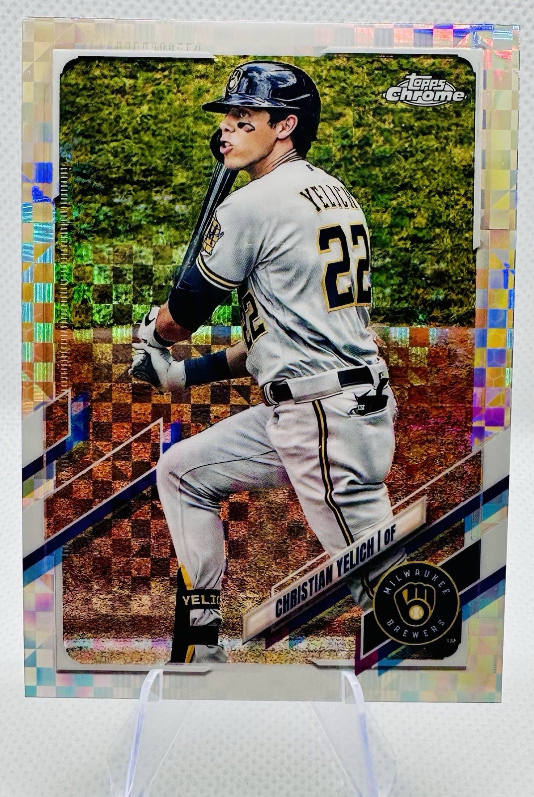 Topps 2021 Chrome X-Fractor Christian Yelich Milwaukee Brewers #18 Baseball Card