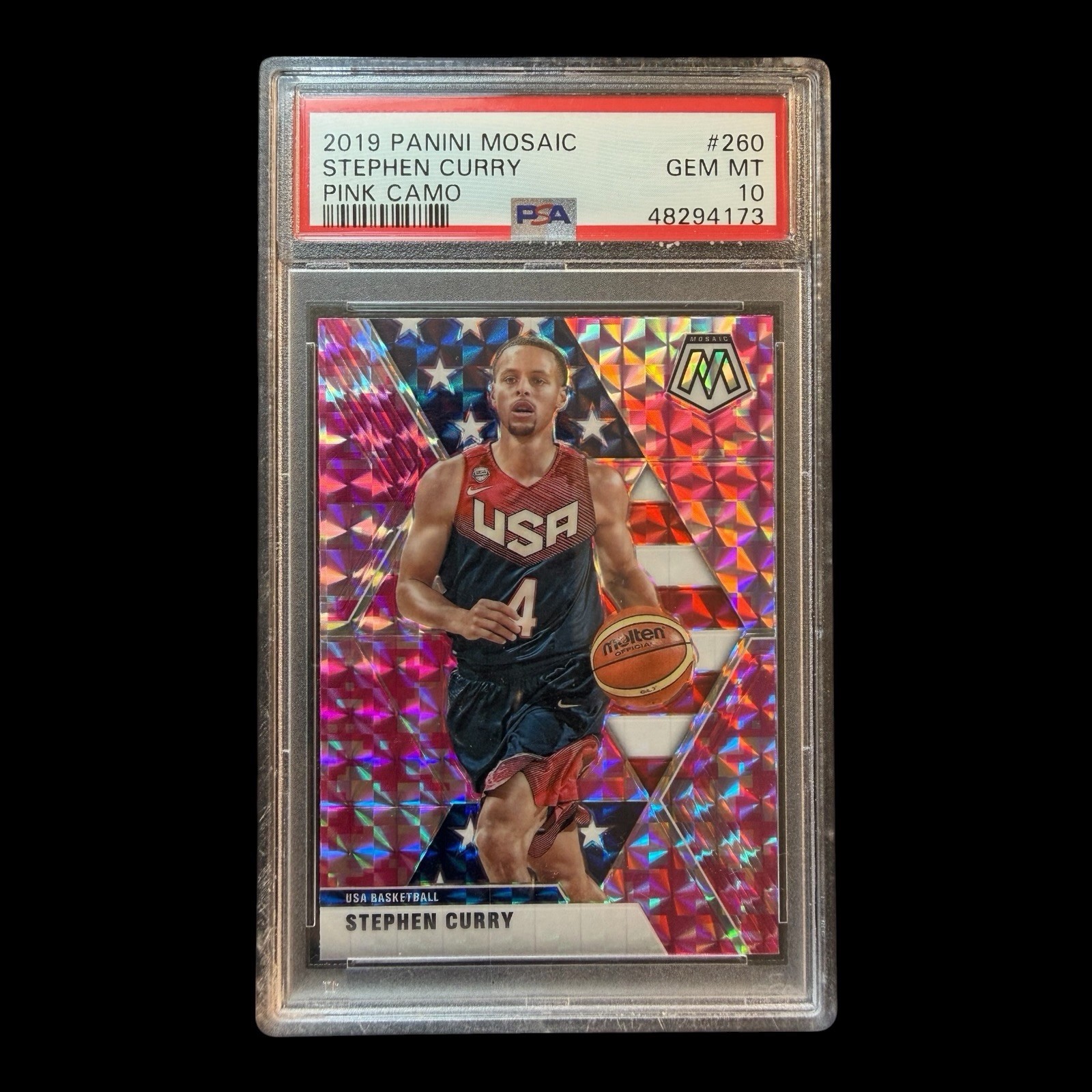 2019 Mosaic Stephen Curry PSA 10 USA Basketball Pink Camo Prizm GEM MT