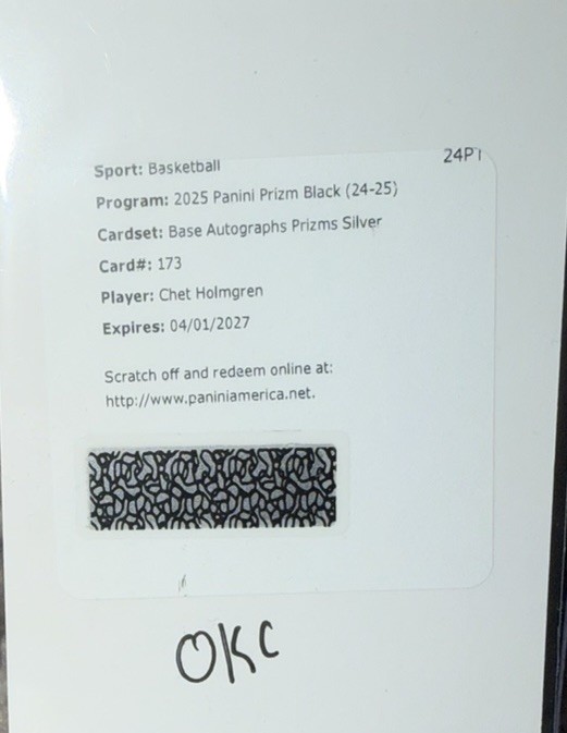 Chet Holmgren 2024-25 Panini Prizm Black Basketball Auto Silver Redemption