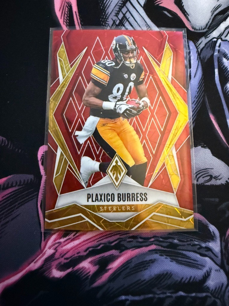 2025 Panini Phoenix Football Plaxico Burress /199 Red Laser Prizm SSP