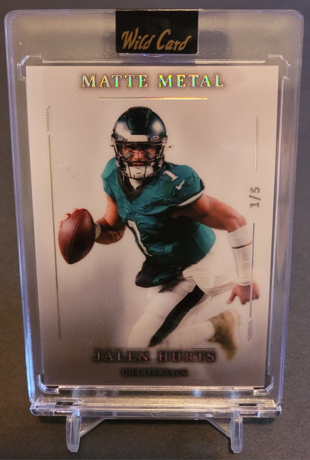 Jalen Hurts 1/5 Matte Metal Wild Card 2026 Encased Football Card