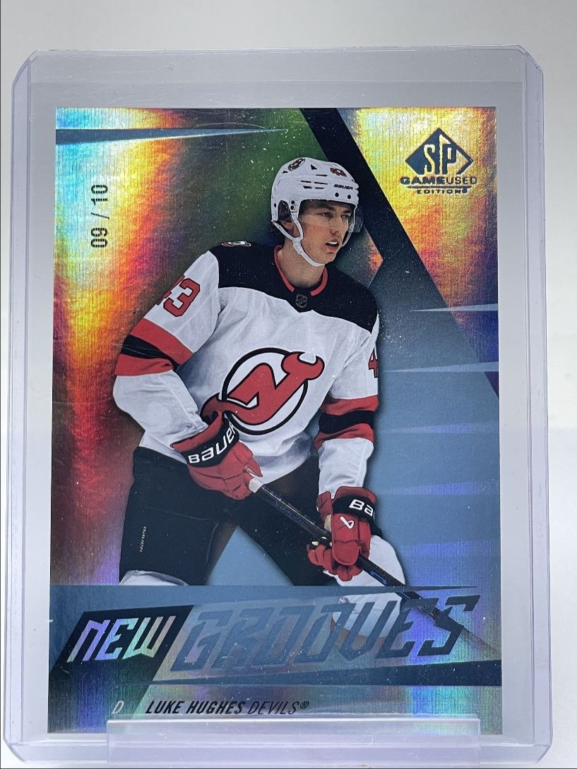 LUKE HUGHES 2023-24 SP GAME USED NEW GROOVES HOCKEY DEVILS /10 Q1303