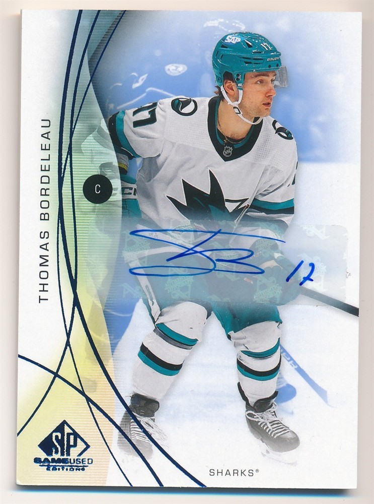 THOMAS BORDELEAU 2024-25 SP GAME USED BLUE #25 AUTO AUTOGRAPH HOCKEY MINT