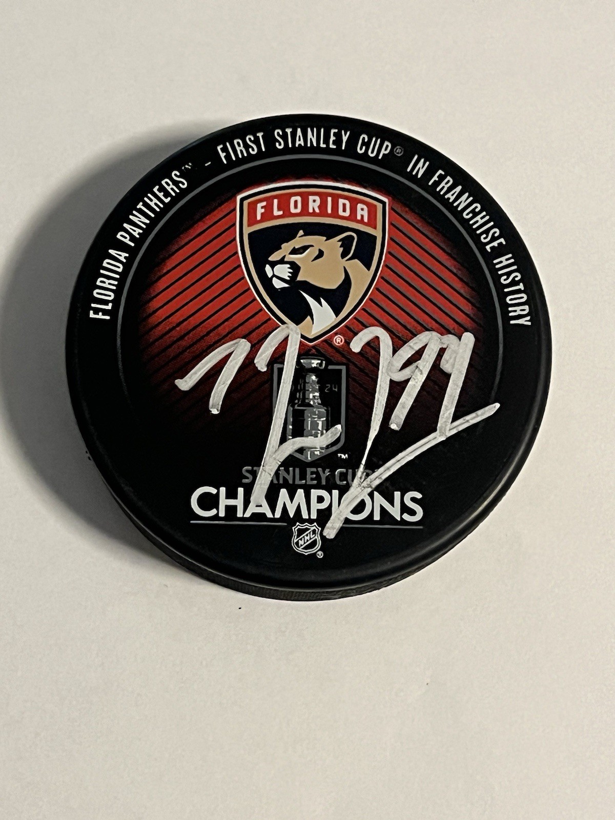 RYAN LOMBERG Signed Florida PANTHERS 2024 STANLEY CUP CHAMPS Hockey Puck BAS COA