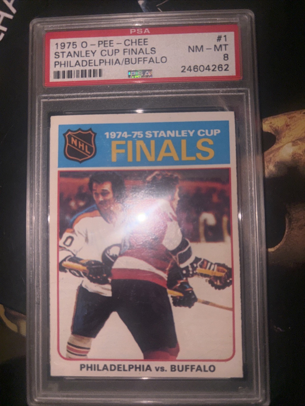 1975 OPC HOCKEY 1 STANLEY CUP FINALS BOBBY CLARKE PSA 8