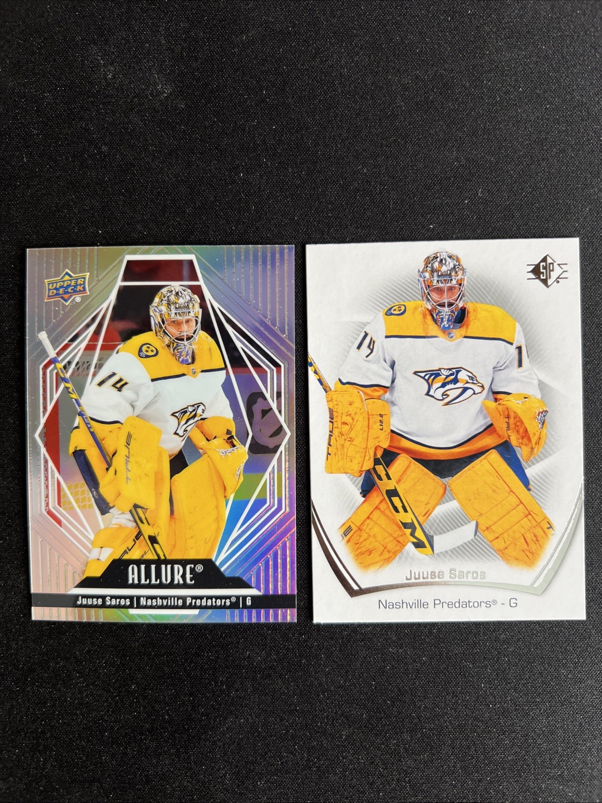 Jusse Saros 2 Card NHL Ice Hockey Trading Card Lot Allure Nashville Predators