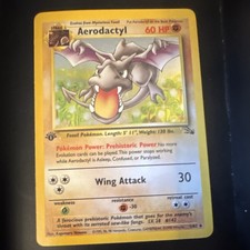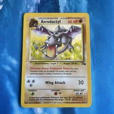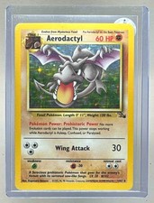 | Ability : Prehistoric Memory Whenever an Evolved pokemon attacks (even if its your opponents) it can use any attack from its Basic pokemon card or any Evolution card attached to it. It still has to pay for that attacks Energy cost. This power stops working while Aerodactyl is Asleep Confused or Paralyzed. Fly : 30 Flip a coin. If heads during your opponents next turn prevent all effects of attacks including damage done to Aerodactyl. If tails this attack does nothing (not even damage). | |||||