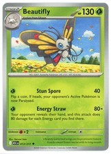 | Ability : Withering Dust As long as Beautifly is in play do not apply Resistance for all Active pokemon. Stun Spore: 20 Flip a coin. If heads the Defending pokemon is now Paralyzed. Parallel Gain: 50 Remove 1 damage counter from each of your pokemon including Beautifly. | |||||