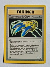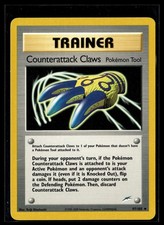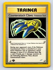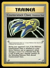 | Attach Counterattack Claws to 1 of your pokemon that doesnt have a pokemon Tool attached to it. During your opponents turn if the pokemon Counterattack Claws is attached to is your Active pokemon and an opponents attack damages it (even if it is Knocked Out) flip a coin. If heads put 2 damage counters on the Defending pokemon. Then discard Counterattack Claws. | |||||