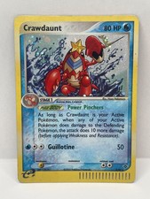 | Ability : Dark Protection Any damage done to Crawdaunt by your opponents attacks is reduced by 10 for each Energy attached to Crawdaunt (after applying Weakness and Resistance). You cant reduce more than 20 damage in this way. Bubblebeam : 20 Flip a coin. If heads the Defending pokemon is now Paralyzed. Cross-Cut : 40+ If the Defending pokemon is an Evolved pokemon this attack does 40 damage plus 20 more damage. | |||||