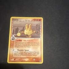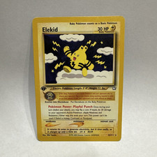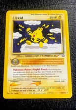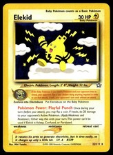 | If this Baby pokemon is your Active pokemon and your opponent tries to attack your opponent flips a coin (before doing anything required in order to use that attack). If tails your opponents turn ends without an attack. pokemon Power : Playful Punch Once during your turn (before your attack) your may flip a coin. If heads do 20 damage to your opponents Active pokemon. (Apply Weakness and Resistance.) Either way this ends your turn. This power cant be used if Elekid is Asleep Confused or Paralyzed. | |||||