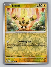 | Ability : Baby Evolution Once during your turn (before your attack) you may put Electabuzz from you hand onto Elekid (this counts as evolving Elekid) and remove all damage counters from Elekid. Magnetic Trip : 10 If Low Pressure System is in play the Defending pokemon is now Confused. | |||||