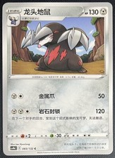 | Tunnel Strike : This attack does 30 damage to 1 of your opponents Benched pokemon. (Dont apply Weakness and Resistance for Benched pokemon.) Dig Uppercut : 50 Put a card from you discard pile into your hand. | |||||