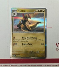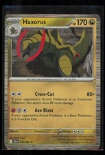 | Dragon Dance : As long as this Haxorus is your Active pokemon each of its attacks does 100 more damage (before applying Weakness and Resistance). You can't add more than 100 damage in this way. Sharp Fang : 60 Dragon Pulse : 130 Discard the top 3 cards of your deck. Dragon Pulse) | |||||