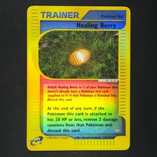| Attach Healing Berry to 1 of your pokemon that Doesn't already have a pokemon Tool card attached to it. If that pokemon is Knocked Out discard this card. At the end of any turn if the pokemon this card is attached to has 20 HP or less remove 3 damage counters from that pokemon and discard this card. | |||||