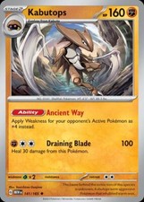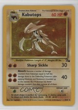 | Sharp Sickle : 30 Absorb : 40 Remove a number of damage counters from Kabutops equal to half the damage done to the Defending pokemon (after applying Weakness and Resistance) (rounded up to the nearest 10). If Kabutops has fewer damage counters than that remove all of them. | |||||