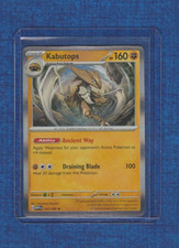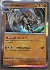 | Ability : Primal Stare As long as Kabutops is your Active pokemon your opponent can't play any Basic pokemon or Evolution cards from his or her hand to evolve his or her pokemon. Luring Antenna : 20 Before doing damage you may choose 1 of your opponents Benched pokemon and switch it with 1 of the Defending pokemon. If you do this attack does 20 damage to the new Defending pokemon. Your opponent chooses the Defending pokemon to switch. Blinding Scythe : 60 | |||||