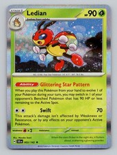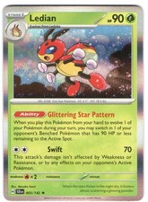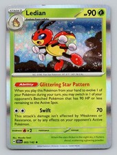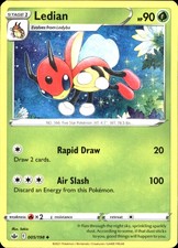| Ability : Prowl Once during your turn when you play Ledian from your hand to evolve 1 of your pokemon you may search your deck for any 1 card and put it into your hand. Shuffle your deck afterward. Metal Star : 30 If Ledian has a pokemon Tool card attached to it draw 3 cards. | |||||