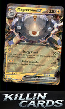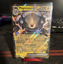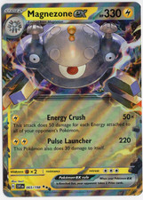 | Ability : Magnetic Search Once during your turn (before your attack) you may search your deck for a or pokemon show it to your opponent and put it into your hand. Shuffle your deck afterward. This power can't be used if Magnezone is affected by a Special Condition. Speed Shot : Choose 1 of your opponents pokemon. This attack does 30 damage to that pokemon. This attacks damage isn't affected by Weakness Resistance Abilitys pokemon or any other effects on that pokemon. Crush Volt : 80 Discard an Energy attached to Magnezone. | |||||