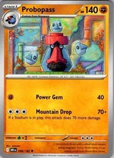| Ability : Competitiveness If you don't have a Supporter card in play each of Probopass's attacks does 30 more damage to the Active pokemon (before applying Weakness and Resistance). Top Chop : 30 Draw a card. Tumbling Attack : 50+ Flip a coin. If heads this attack does 50 damage plus 20 more damage. | |||||