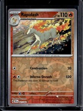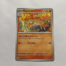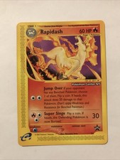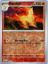 | Ability : Burning Mane If Rapidash is your Active pokemon and is damaged by an opponents attack (even if Rapidash is Knocked Out) the Attacking pokemon is now Burned. Rear Kick : 30 Shooting Fire : Discard 2 Energy attached to Rapidash and choose 1 of your opponents pokemon. This attack does 60 damage to that pokemon. (don't apply Weakness and Resistance for Benched pokemon.) | |||||