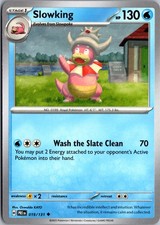 | Ability : Second Sight Once during your turn (before your attack) you may look at the top 3 cards of either players deck and put them back on top of that players deck in any order. This power cant be used if Slowking is affected by a Special Condition. Psyshock : 30 Flip a coin. If heads the Defending pokemon is now Paralyzed. | |||||