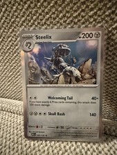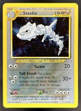 | Ability : Rare Metal All basic Energy cards attached to Steelix provide Energy instead of their usual types. Squeeze : 20+ Flip a coin. If heads this attack does 20 damage plus 10 more damage and the Defending pokemon is now Paralyzed. Metal Tail : 40 Before doing damage you may flip a coin. If heads this attack does 80 damage. If tails this attack does nothing. | |||||