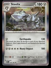 | Ability : Perfect Metal Steelix can't be affected by any Special Conditions Energy Stream : 30 Search your discard pile for an Energy card and attach it to Steelix. Gaia Crush : 100 You may discard any Stadium card in play. | |||||