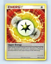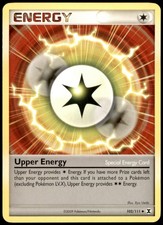 | Upper Energy provides Energy. If you have more Prize cards left than your opponent and this card is attached to a pokemon (excluding pokemon LV.X) Upper Energy provides . | |||||