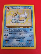 | Ability : Self-healing Whenever you attach a Energy card from your hand to Vaporeon remove all Special Conditions affecting Vaporeon. Hypnosplash : 10 The Defending pokemon is now Asleep. Aqua Trick: 40 If the Defending pokemon has any Energy cards attached to it flip a coin. If heads choose 1 of those Energy cards and move it to 1 of your opponents Benched pokemon. If your opponent has no Benched pokemon ignore this effect. | |||||